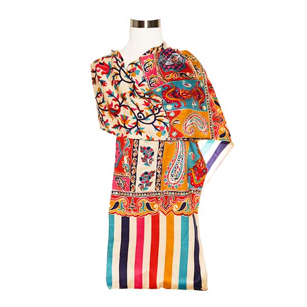 CASHMERE BLEND ANTIQUE DESIGN HAND EMBROIDERED SCARVE